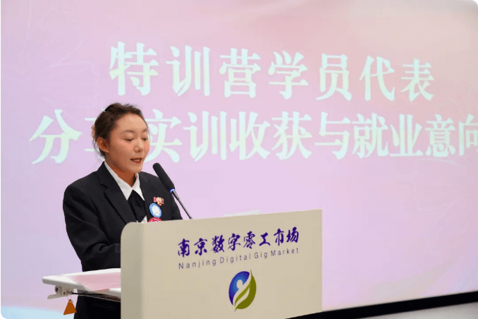 "格桑花开"特训营学员代表白玛仓觉登台发言,她结合自身实训经历分享了学习收获,并表达了明确的职业发展意向,展现了新时代青年积极向上的精神风貌。
