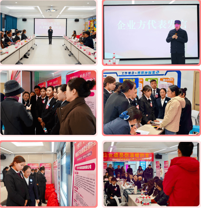 在就业创业鹊桥会环节,23名"格桑花开"特训营学员依次登台,进行了简洁有力的自我介绍和求职意向阐述,充分展示了个人特长与职业规划。随后,企业方代表详细介绍了公司发展情况及招聘需求。最后的双向自由交流环节将活动推向高潮,学员与企业代表展开面对面深入洽谈,现场互动热烈,为精准就业匹配奠定了坚实基础。参加本次活动的23名学员全部成功达成就业。